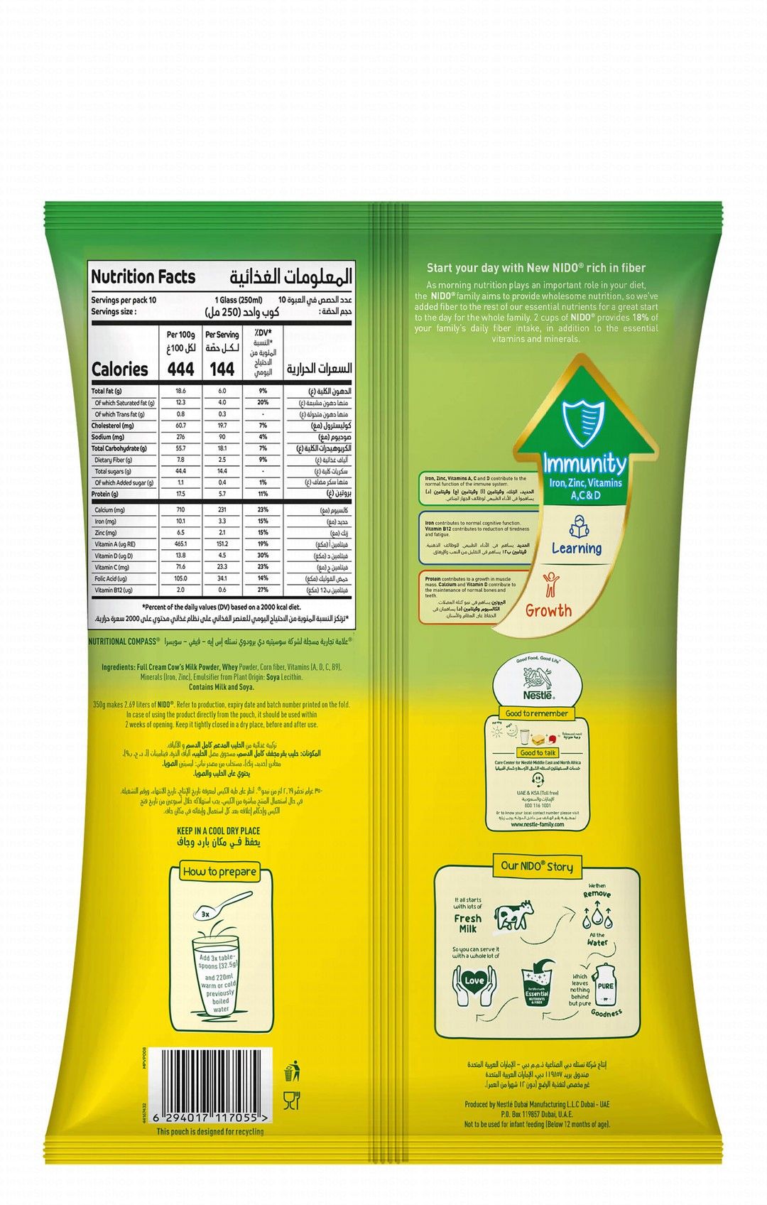Home Dairy & Eggs Nido Fortified Rich in Fiber Full Cream Milk Powder