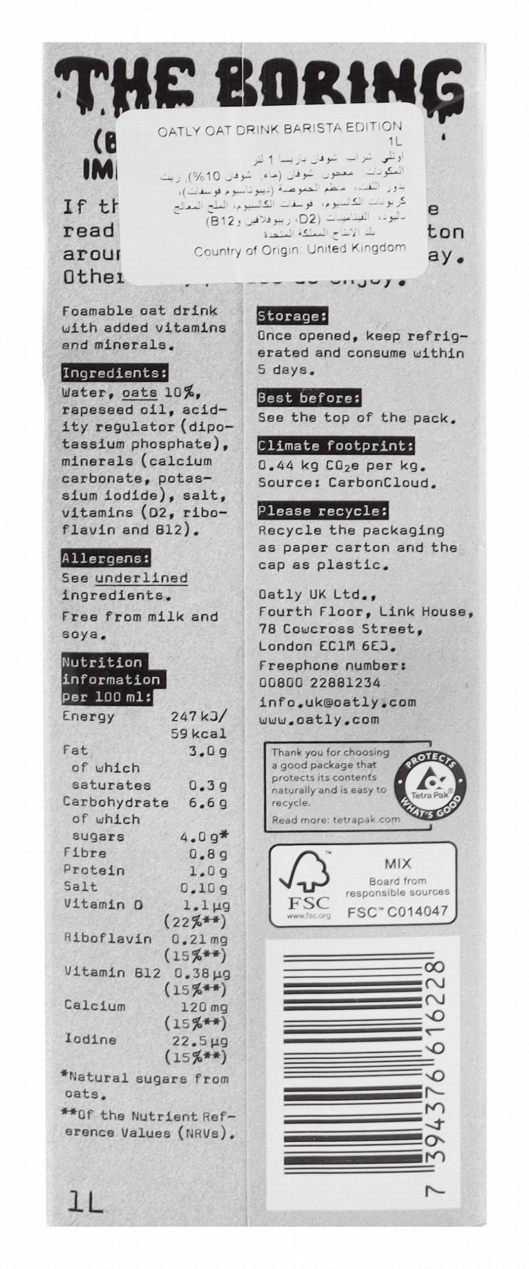 Oatly The Original Barista Edition Vegan Oat Drink